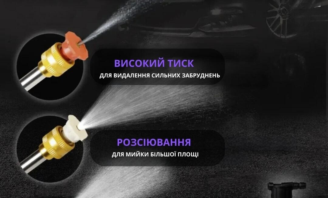 Автомийка 10 в 1 буде корисна у вирішенні типових побутових завдань таких як, мийка машини, чистка даху, чистка сидіння, полив рослин, мийка вікон, чистка плиток.